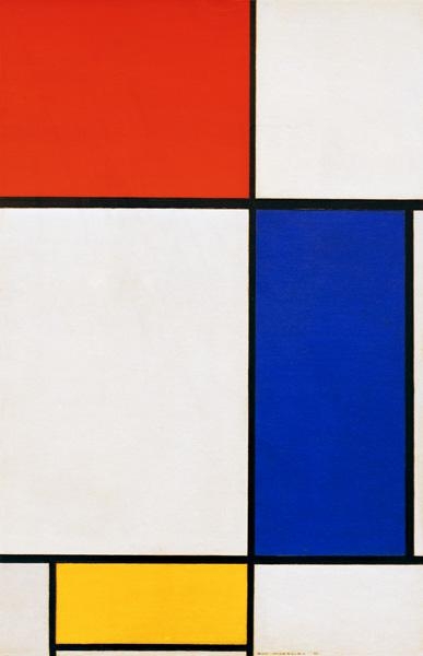 P. Mondrian, composizione con giallo, rosso e blu loro crescita.
